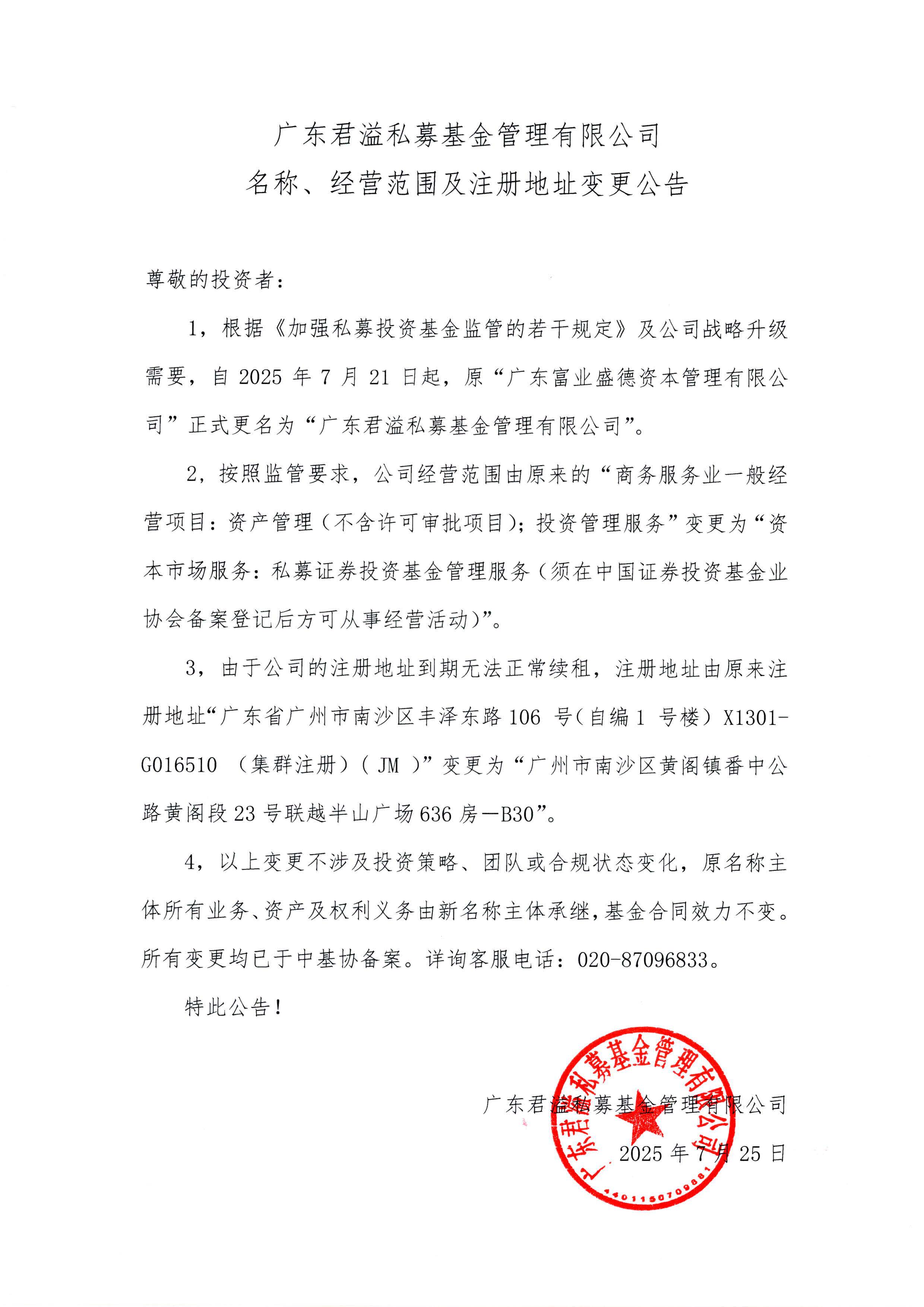 联系电话:020-87096833 广东君溢私募基金管理有限公司